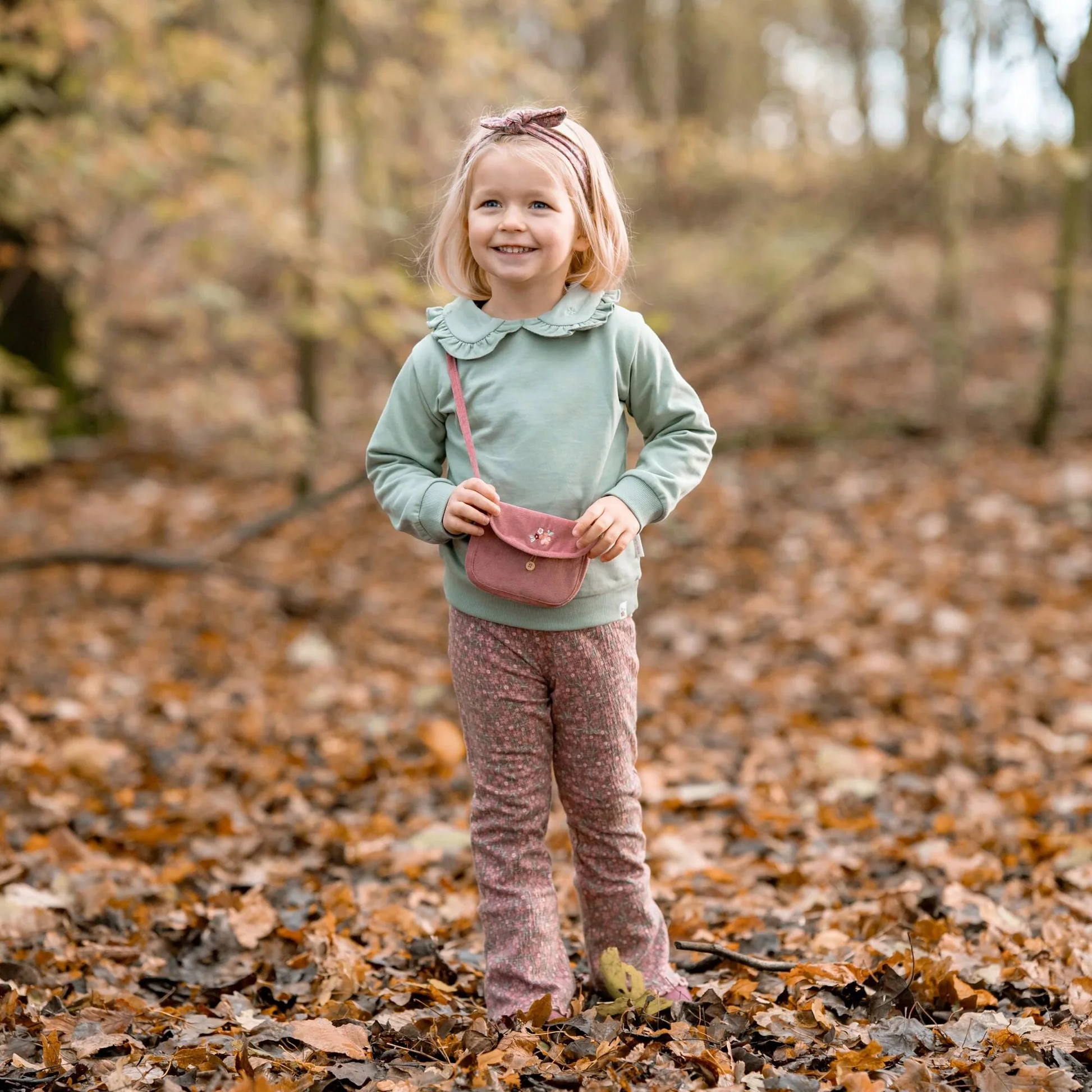 bolsito de micropana en rosa con detalle bordado. Tamaño pequeño, ideal para peques desde 18m.