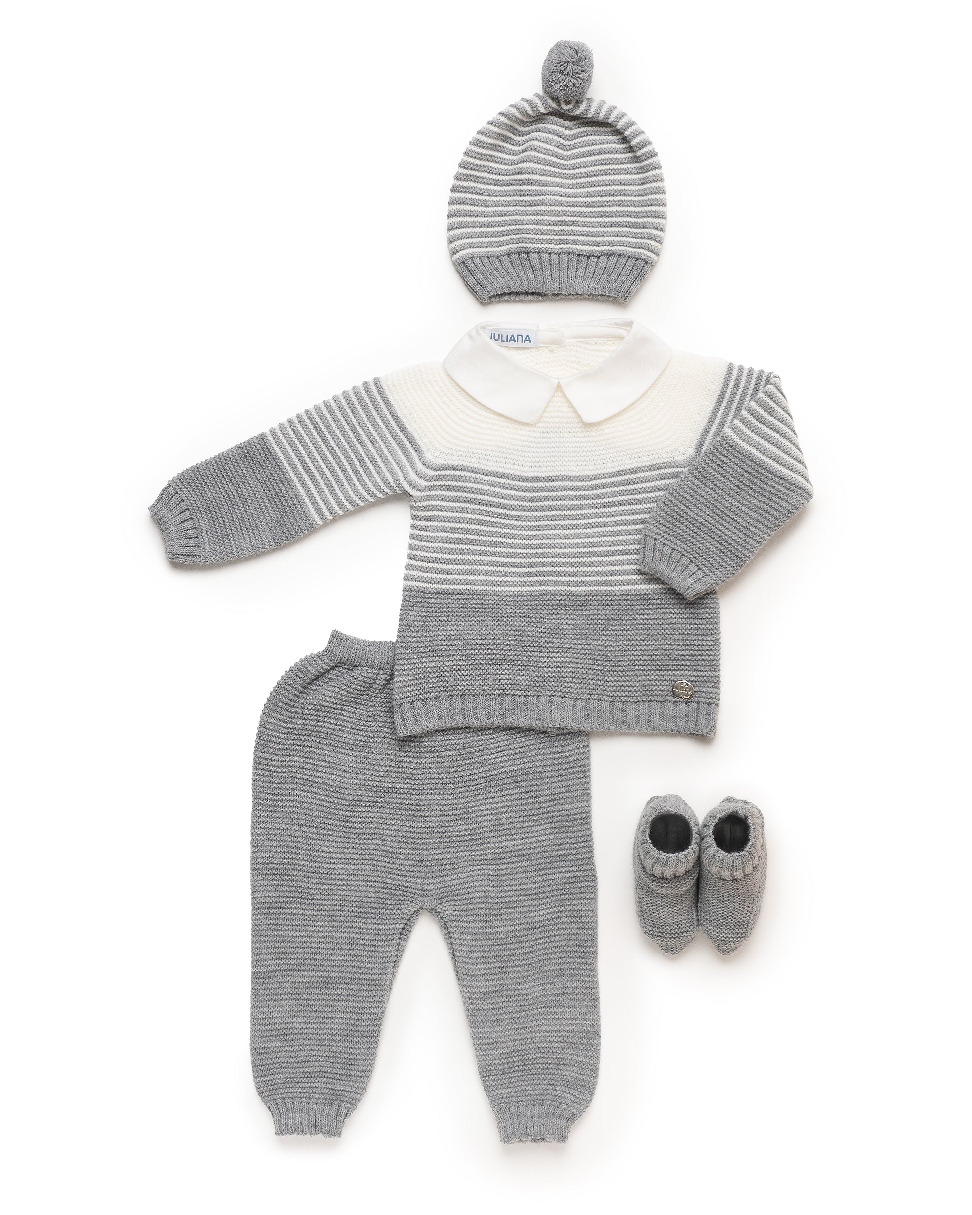 el regalo perfecto para ese bebé que estás a puntito de conocer . Incluye jubón , polaina, patucos y gorrito . Un set de punto perfecto para el invierno.