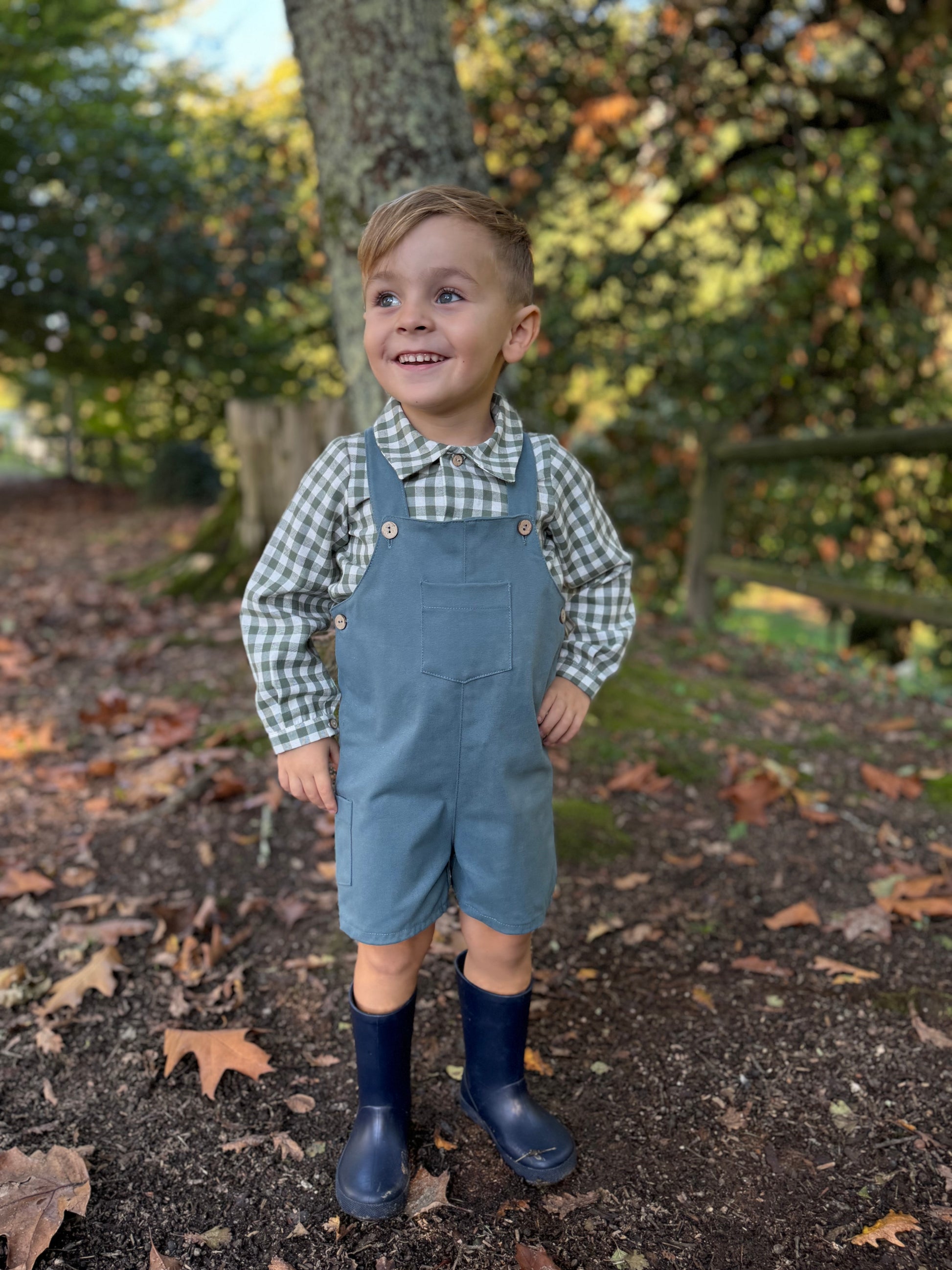 Si quieres un look con un toque especial para tu peque, con este peto en azul petróleo tienes muchas opciones para combinar.