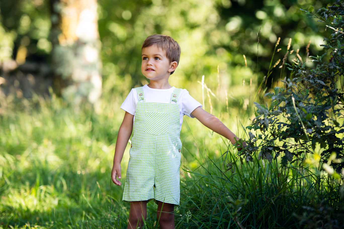Peto vichy en color pistacho con los botones en madera. Un básico para cualquier ocasión.