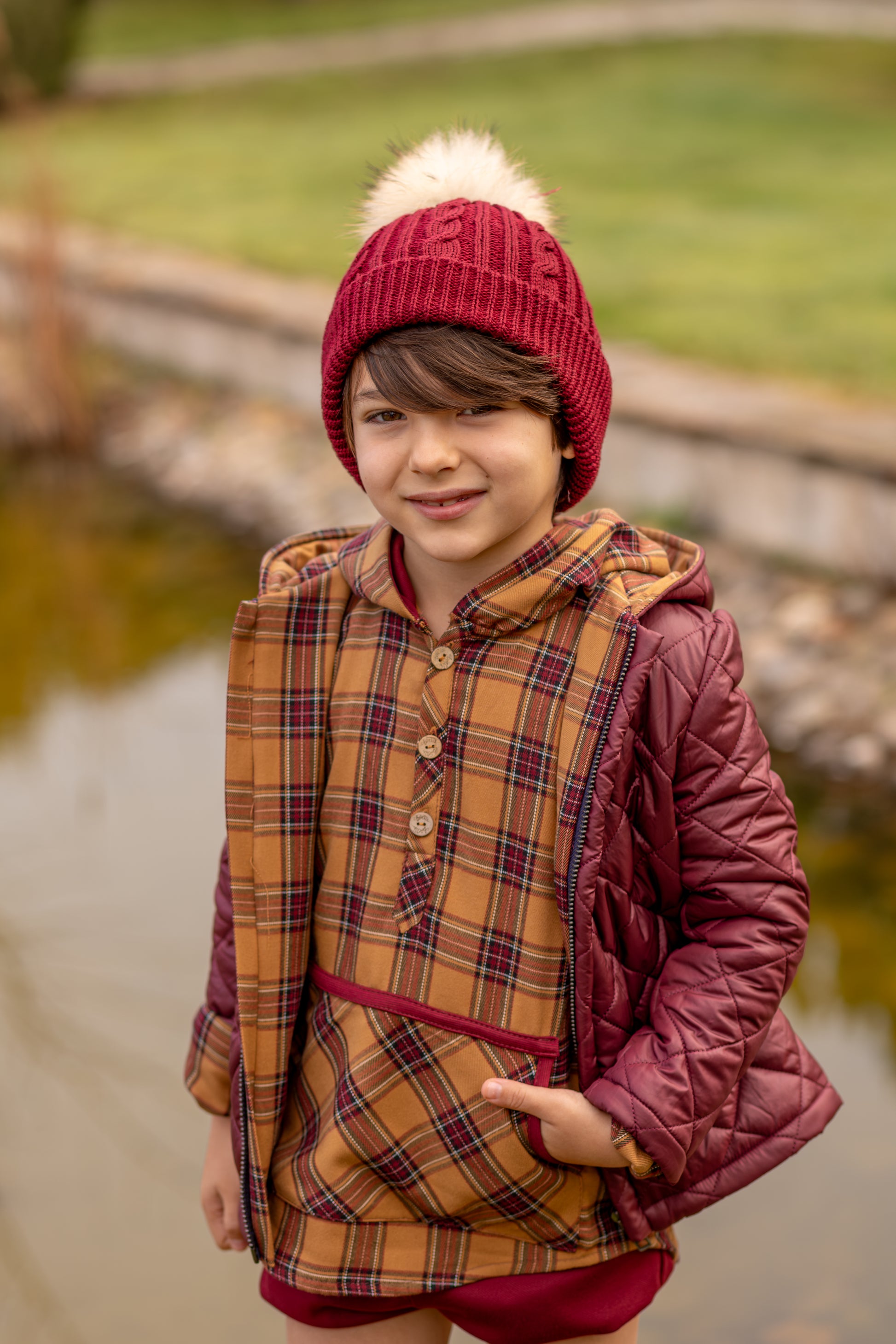 Los niños también pueden ir guapos y cómodos en Invierno! Esta camisa con capucha y bolsillo canguro es ideal! Combínala con bermudas o de forma más informal.
