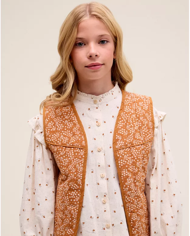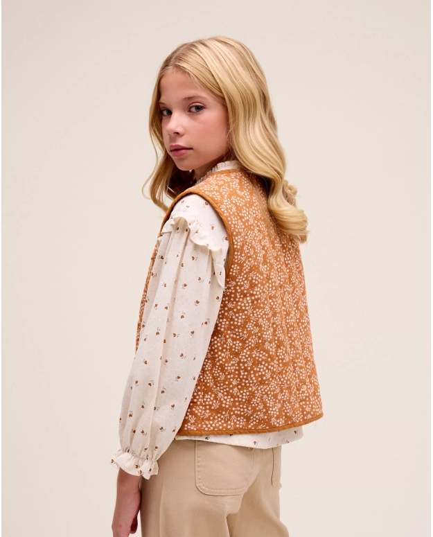 Los chalecos son una de las prendas más estilosas para completar un look sencillo , y gusta tanto a niñas como a mamis . Añade la blusa florecillas caldera y tienes un lookazo !