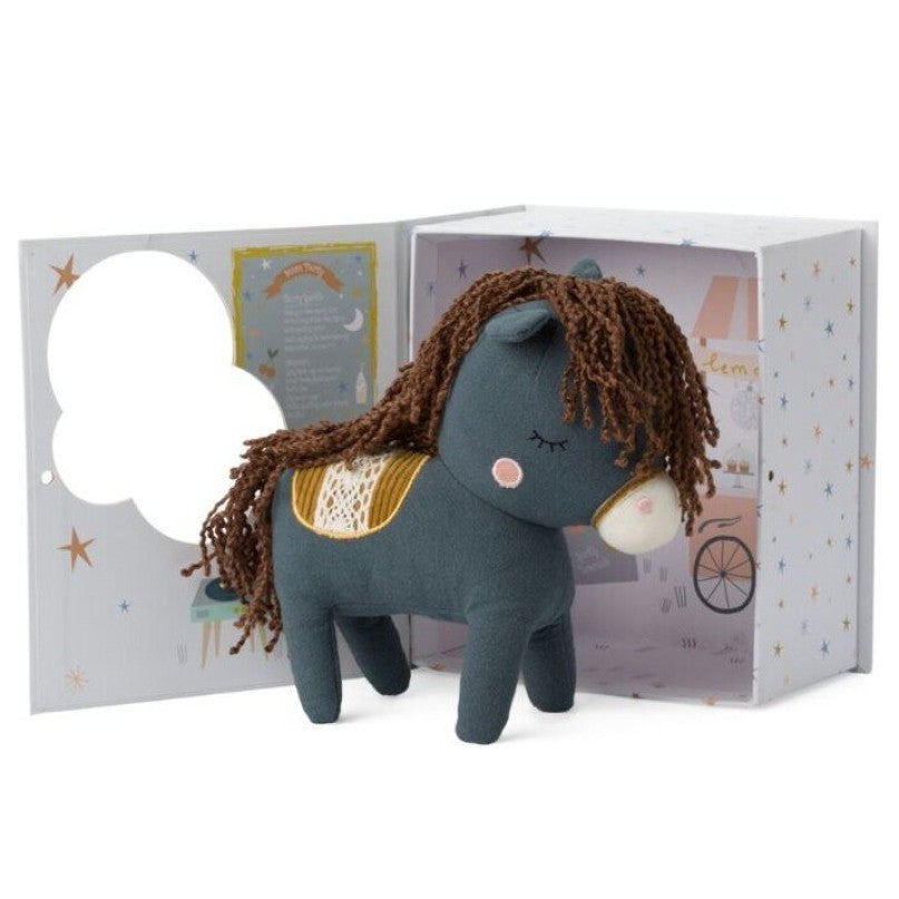 Henry Horse  es un adorable caballito de peluche, ideal para regalar a bebés y niños. Su diseño vintage, confeccionado con materiales sostenibles, lo convierte en un juguete seguro y perfecto para estimular el juego imaginativo