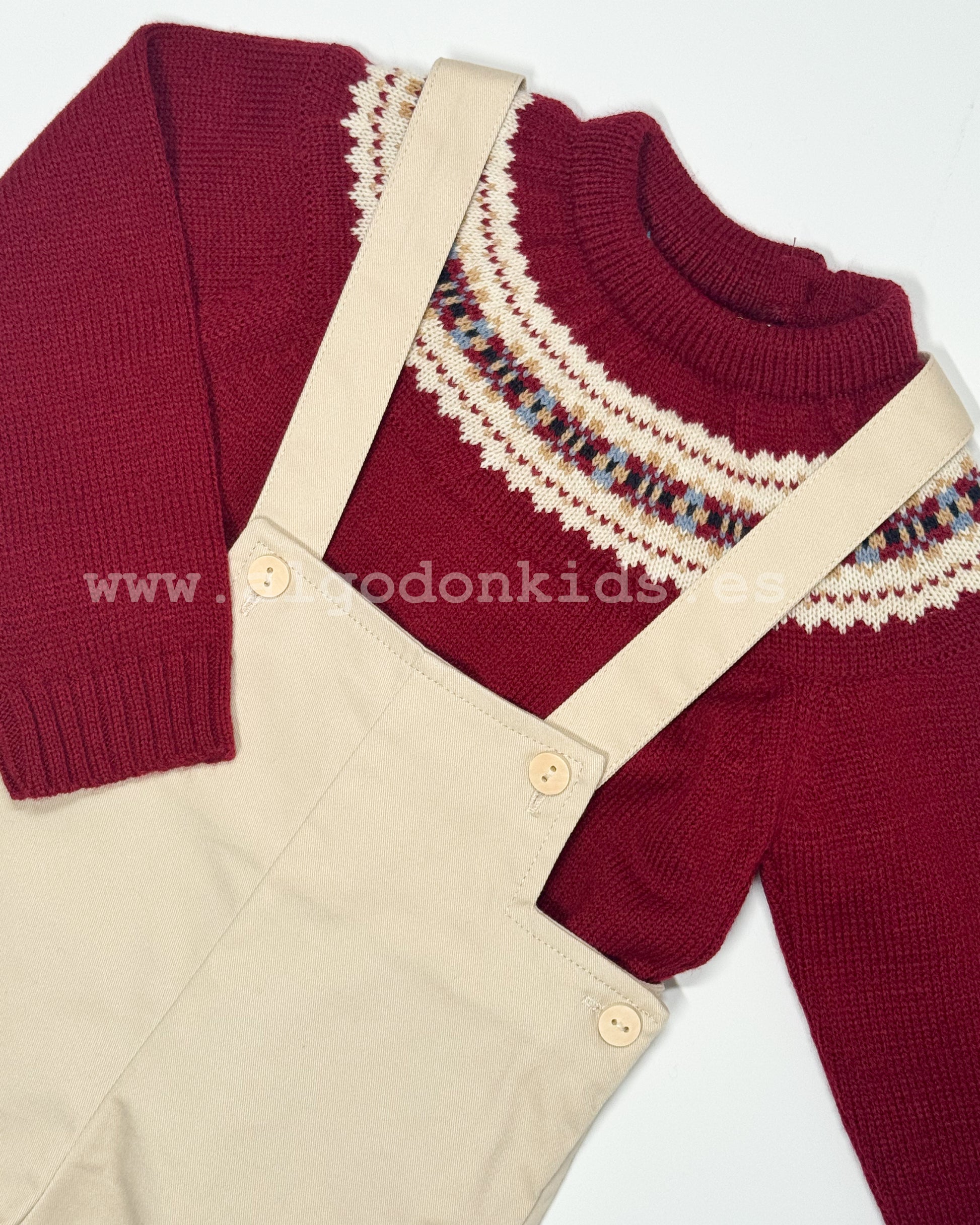 Este jersey granate es el aliado perfecto de los más peques. Su diseño griego clásico combina calidez y estilo, ofreciendo ese toque especial que evoca la magia de la Navidad. Completamente unisex. Perfecto para crear momentos acogedores llenos de espíritu navideño.
