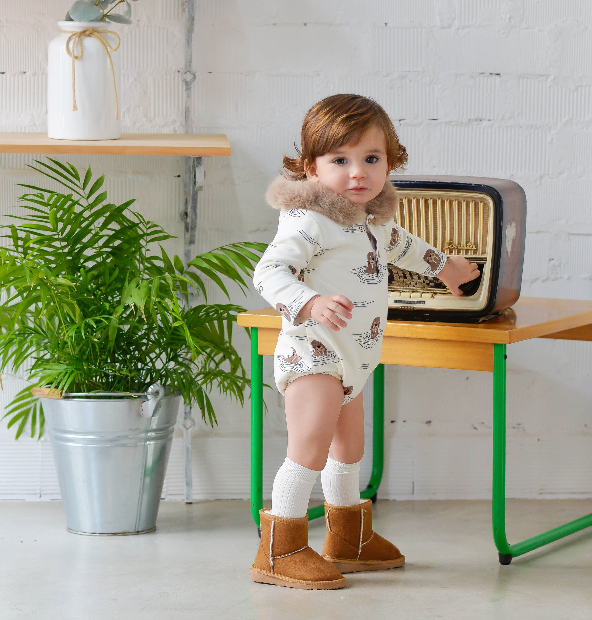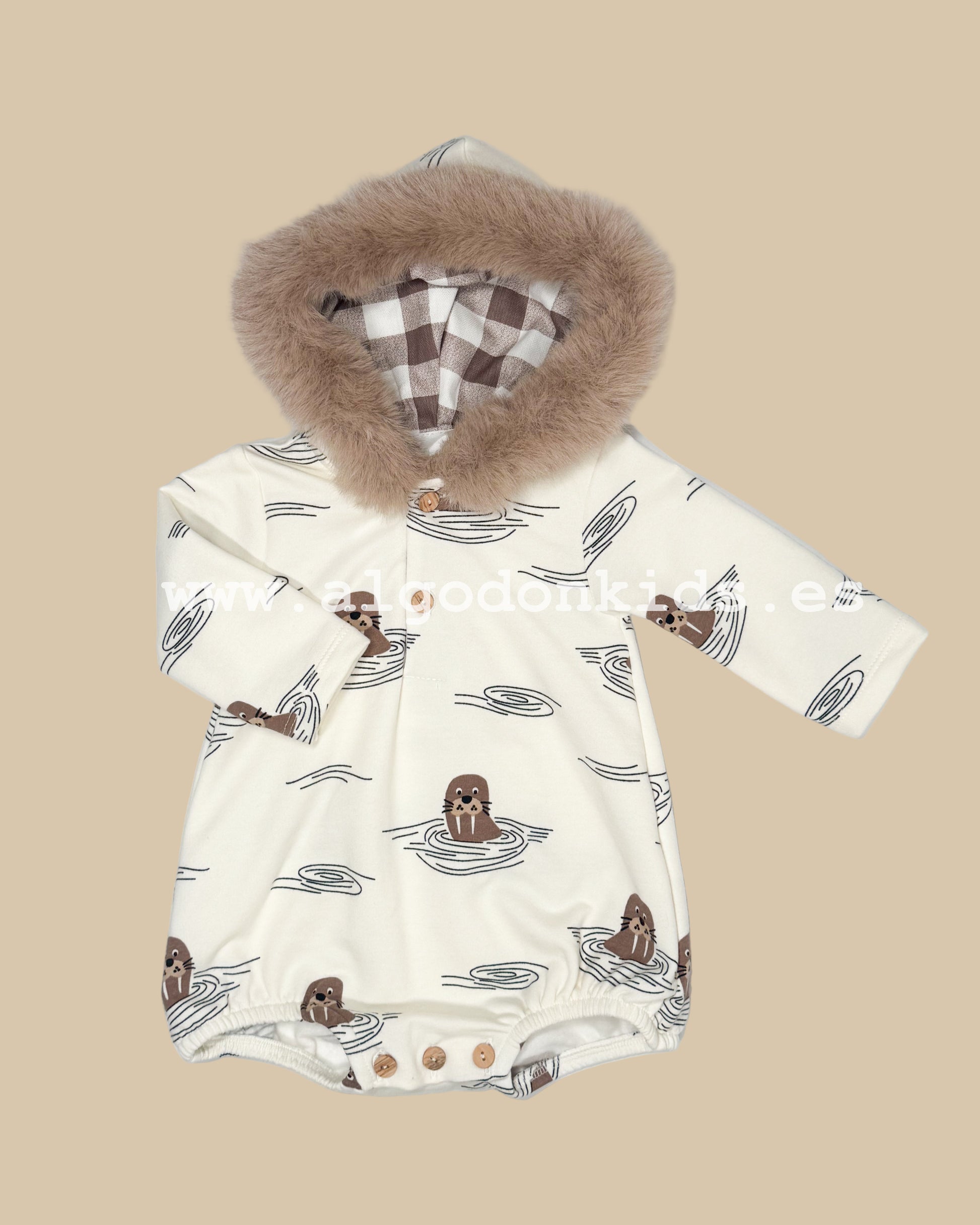 Un Pelele que enamora desde el primer momento. Confeccionado en tejido suave y cálido, proporciona la comodidad máxima para tu bebé durante todo el día. Su estampado de león marino único y divertido lo convierte en una prenda especial que destaca entre otras opciones. Perfecto para mantener a tu pequeño abrigado y feliz con un toque de personalidad.