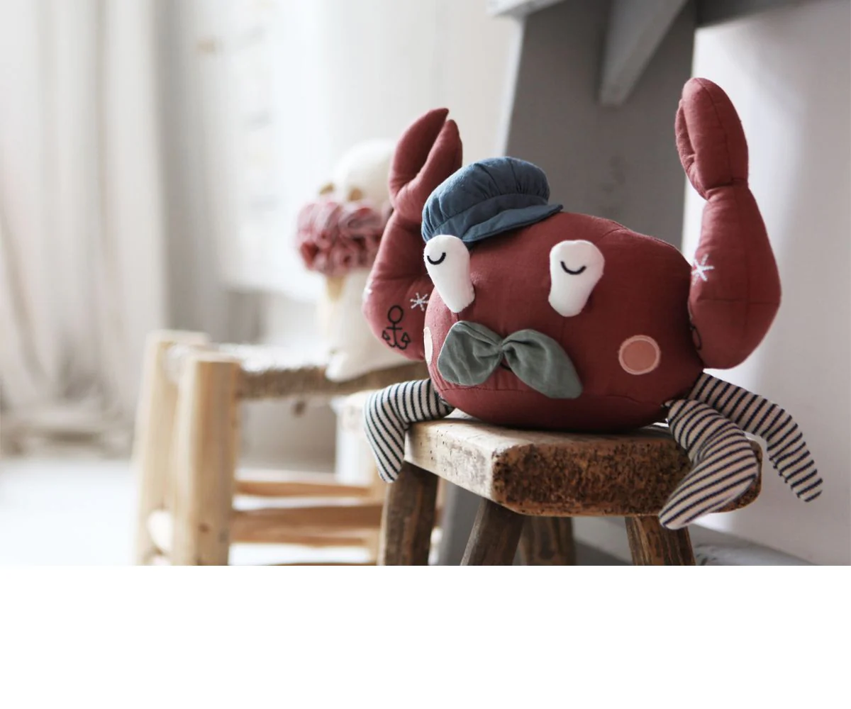 Conoce al Sr. Cangrejo Claude Christophe. El Sr. Cangrejo Claude Christophe, con su maravilloso bigote, ha navegado por todos los mares y es realmente travieso. Pero contigo, es tan tierno como su pequeño bigote. ¿Y sabes qué? Su tatuaje no es real. ¡Dice que le duele demasiado!