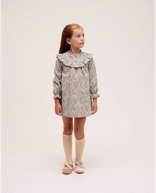 Un vestido sencillo de esos que ganan al verlos puestos 100% . Con fondo verde y flores en marino y blanco .